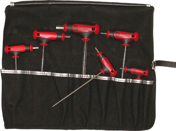 913GTIn acciaio al CROMO-VANADIO.$Con una estremità a sfera per uso inclinato fino a 30°, l´altra estremità per uso normale.$Impugnatura a "T" in materiale bicomponente, con foro, lama nichelata.