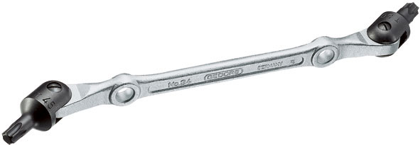 913GDA 45 50In acciaio al CROMO-MOLIBDENO.$Con due teste a impronta TORX snodate e fori per uso a leva.$Esecuzione cromata, teste fosfatizzate.