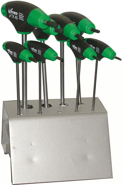 913GDPIn acciaio speciale. Per viti con impronta TORX.$Tipo a 2 teste. Impugnatura a "T" in materiale bicomponente con foro, lama nichelata.