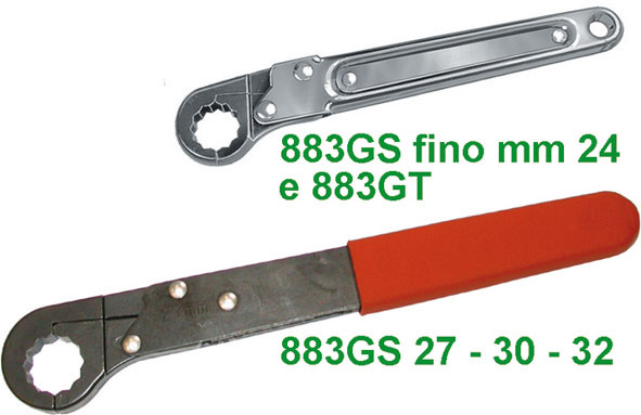 883GT 1Corpo in lamiera di acciaio e testa forgiata.$Adatte per serrare dadi incorporati su tubi.