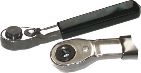 984GZRIn robusta lamiera d´acciaio. Leva a cricco, con testa piegata a 25°, attacco magnetico esagonale femmina per bits attacco 1/4", con levetta per movimento D+S.$Impugnatura in morbido materiale plastico, dentatura fine. Lunghezza totale mm 115.