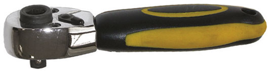 984LIn acciaio CROMO-VANADIO. Leva a cricco COMBINATA con attacco esagonale femmina 1/4" per bits da una parte e attacco quadro maschio 1/4" per bussole dell´altra. Con levetta per movimento D + S.$Impugnatura in materiale bicomponente.$Dentatura fine. Lunghezza totale mm 108.