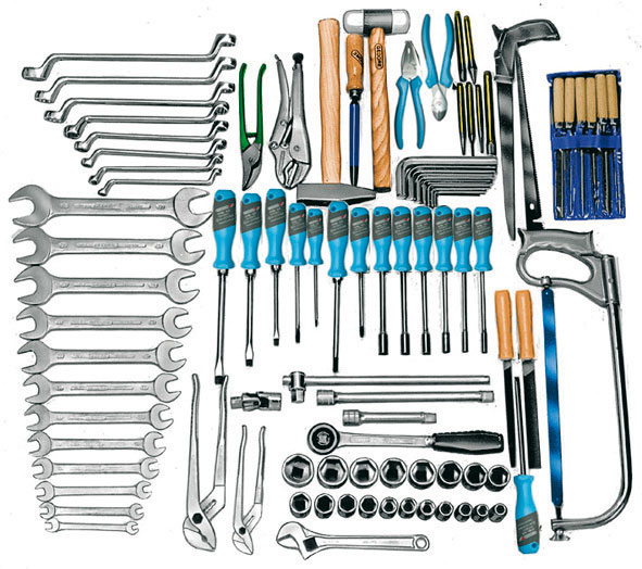 985G 16Assortimenti universali di utensili adatti per la dotazione di armadietti, carrelli e cassette portautensili.$Particolarmente indicati per auto-officine, elettrauto e carrozzieri.